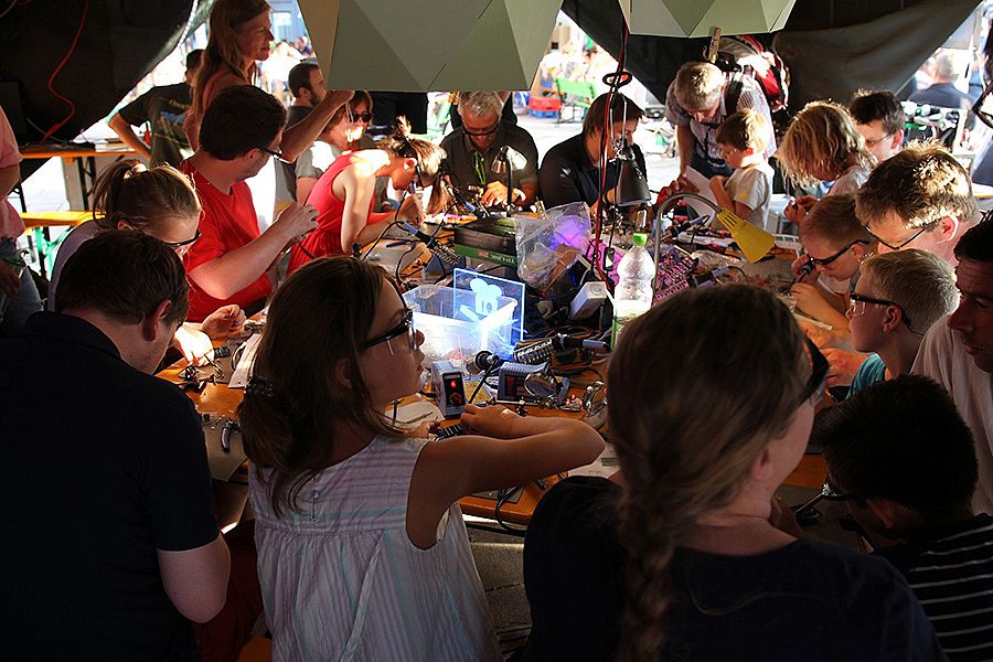 Der gemeinnützige Regensburger Hackspace "Binary Kitchen e.V." engagiert sich im Bereich der Citizen Science und Bildung für Technikbegeisterte in seinen eigenen Räumen. Dort bietet er Interessierten eine gemütliche Plattform für Wissensaustausch, Werkstätten und Labore. So entstehen LED-Lichtkunst, Open Source Software, Lötkurse, eigene Smart Home Lösungen und Elemente an selbst gebauten 3D-Druckern und CNC-Fräsen.